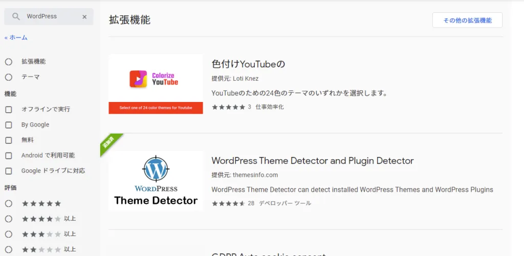 そこで、この広いChromeウェブストアにはもっと素晴らしい拡張機能があるのではないか!!と思いてきとうに「WordPress」と検索してみると、、